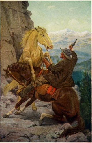 Tuesday’s shrill neigh awakened her. She sat up shivering, for the warm air was underlaid with cold; and quivering, for the alarm had fallen pat upon the climax of her dream. She rubbed her eyes, a little blinded by the sunlight, and saw that Tuesday stood with head high and nostrils distended, gazing past her toward the upper end of the pasture. She was not surprised, being yet under the spell of her dream-fairyland, to see a horseman galloping straight toward her. If not the white knight, then––For some seconds she stared, awakening slowly; and smiled at length at her childish fancy. It was only a cowboy, doubtless, riding upon his own prosaic business. And yet––She became gradually aware of something unusual, something disquieting in the manner of the man’s approach. The horse was leaping under the spurs; the rider sat upright and alert in the saddle; and suddenly, as she watched him, the man’s hand went to his hip, and there was a gleam of metal in the sun.