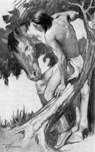 “It was not in my heart to love the white-eyed girl,” continued the Black Bear. “To Shoz-Dijiji she was as a sister. She was kind to me. When the soldiers of the pindah-lickoyee were all about, she brought me food and water and gave me a horse to carry me back to my people. I knew that she did that because I had once saved her from a white-eyed man who would have harmed her. No thought of love was in my mind. How could it have been? How could I think that Shoz-Dijiji, an Apache, a war chief of the Be-don-ko-he, could love a girl of the pindah-lickoyee!