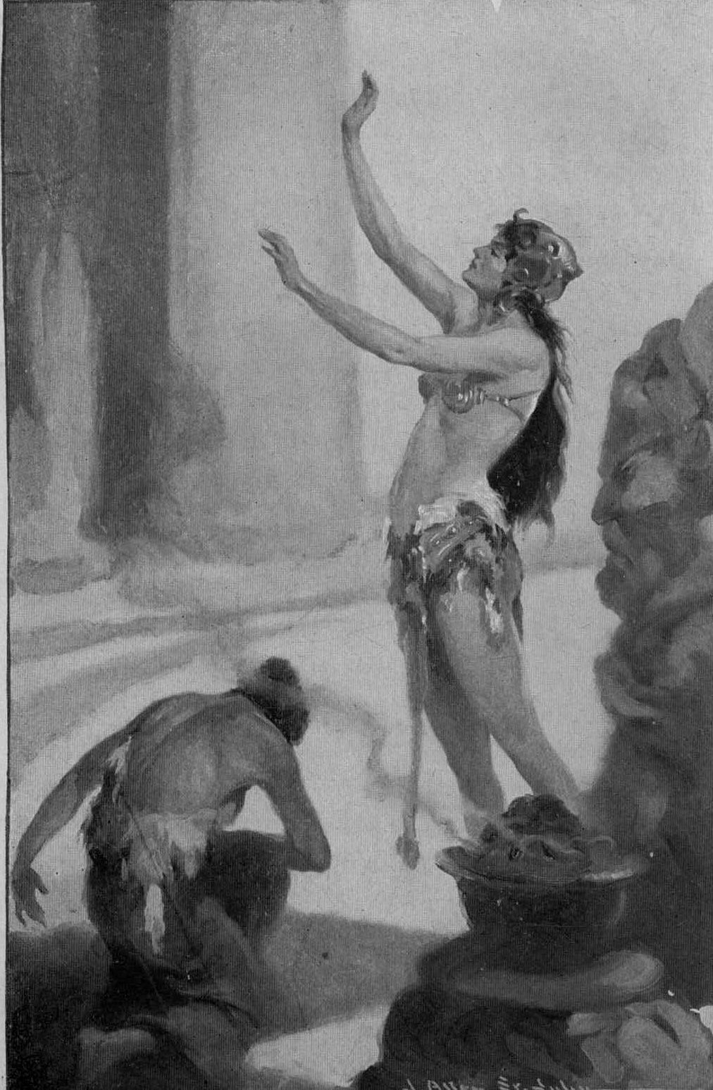 Evidently there was a disturbing quality in the sound that Sabor heard—something that inspired a certain restlessness, if not actual apprehension—though she could not be sure as yet that it boded ill. It might be her great lord returning, but it did not sound like the movement of a lion, certainly not like a lion dragging a heavy kill. She glanced at her cub, breathing as she did so a plaintive whine. There was always the fear that some danger menaced him—this last of her little family—but she, Sabor the lioness, was there to defend him.