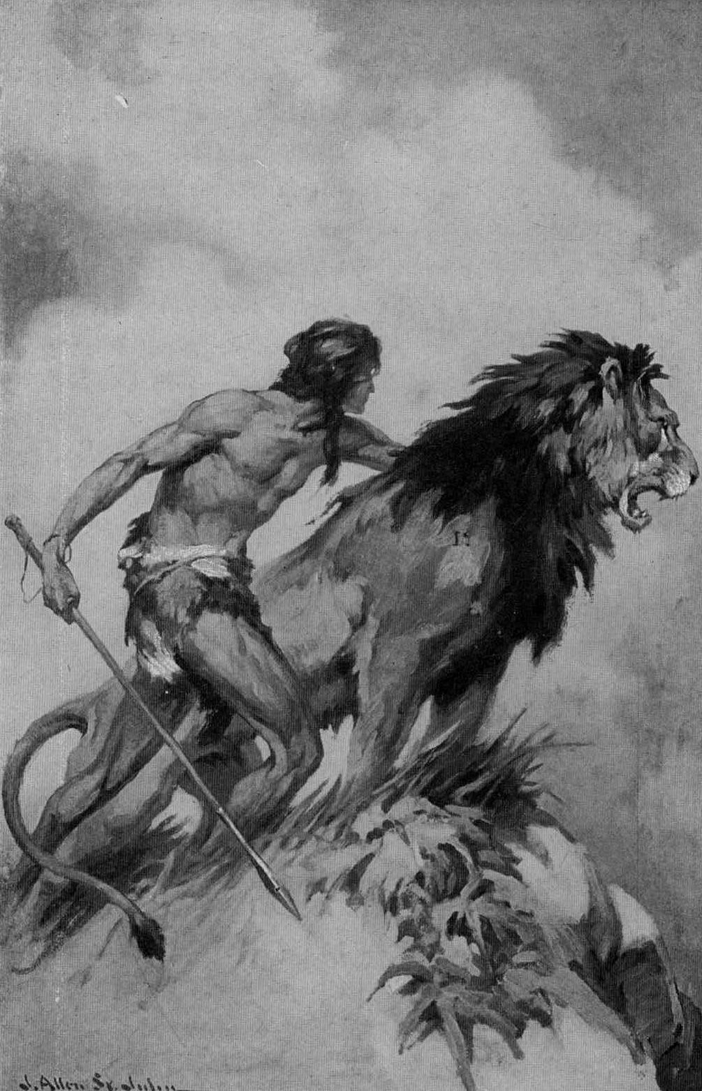 Lady Greystoke and Korak were often interested spectators of the education of the golden lion, though the former expressed mystification as to the purpose of such elaborate training of the young cub and some misgivings as to the wisdom of the ape-man’s program.