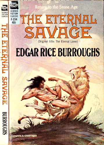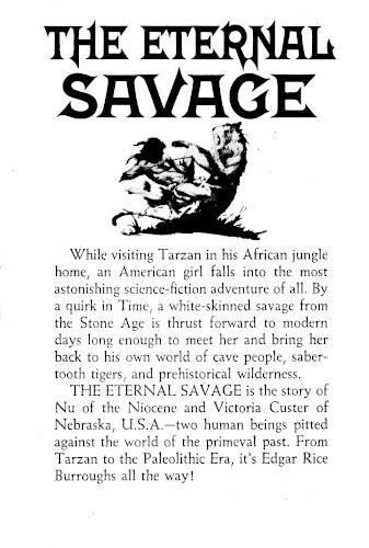Here is THE ETERNAL SAVAGE, filled with terrific adventure, of primitive man against monster beast, and of comely cavewoman against unending peril in a world where civilization was not even a cloud on the volcanic horizon.