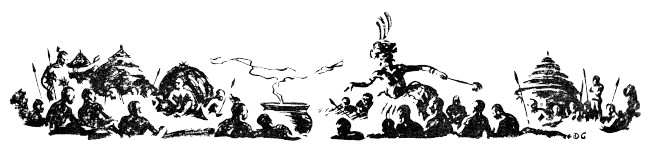 About the village fires the boys could see the natives eating and drinking, while Intamo, clothed in all the hideous and grotesque finery of his profession, danced wierdly in the firelight, sprinkling powder into the various cooking pots and making strange passes above them with a stick to which was fastened the brush from the tail of a buffalo.