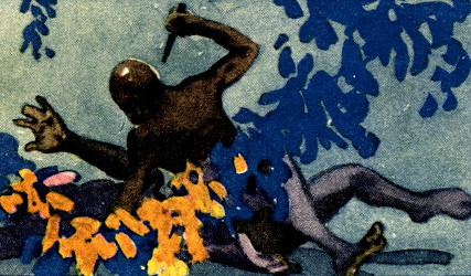It was at this instant that a small, panther-like figure, springing with the agility and ferocity of one of the great jungle cats, launched itself full upon the breast of Intamo, hurling the witch-doctor to the ground. Twice a muscular arm rose and fell; twice a dull blade gleamed for an instant in the fitful firelight, then Ukundo arose from the prostrate form, but Intamo lay very still where he had fallen.