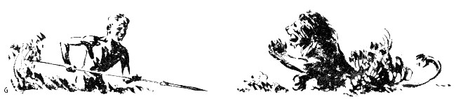 Dick and Doc scrambled down to search for Dick's spear. The first thing their eyes fell upon was the dead body of a great black-maned lion, from the chest of which protruded the missing weapon.