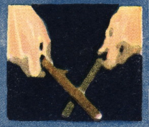 Doc bowed very low, reached out and took the coin from Dick's ear, or so he made it appear. Then into one clenched fist, between the thumb and first finger, he inserted the stub of a lead pencil, shoving it down until it was out of sight. "Abacadabra! Allo! Presto! Change cars and be gone! Now you see it, now you don't!" Doc opened his hand and the pencil was gone.