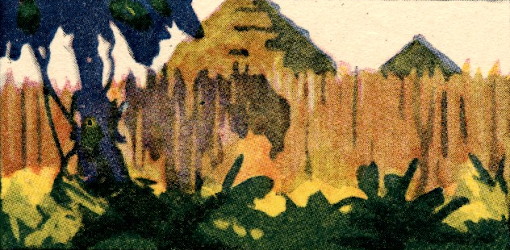 The train, deserting the open country, entered a great forest, dark, gloomy, mysterious. Mighty trees, festooned with vines, rose from a tangle of riotous undergrowth along the right-of-way, hiding everything that lay beyond that impenetrable wall of flower-starred green,—a wall that added to the mystery of all that imagination could picture of the savage life moving silently behind it. There was no sign of life. The forest seemed like a dead thing.
