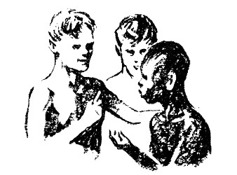 Why then did they look so much alike and why did everyone call them the Tarzan Twins? One could almost start a guessing contest with a conundrum like this, but the trouble is that no one would guess the correct solution, though the answer is quite simple. Dick's mother and Doc's mother were sisters—twin sisters—and they looked so much alike that they looked more alike than two peas, and as each boy resembled his mother—the result was—they resembled each other.