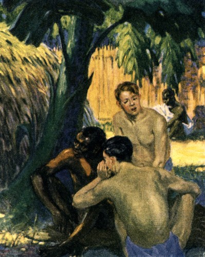 Their progress was slow because the boys could not travel fast. Their bare feet were sore and bleeding and the naked flesh of their bodies was torn and scratched by the cruel thorns that seemed to reach out to seize them.