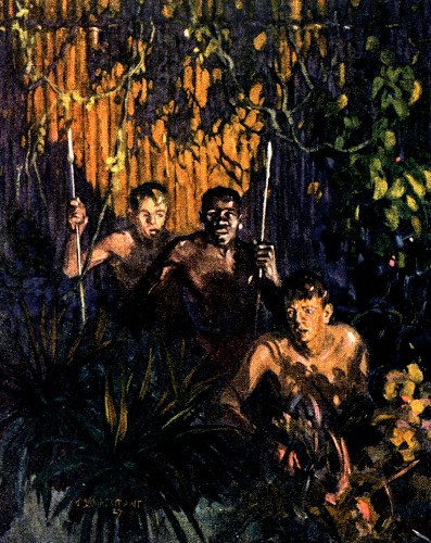 The moment was approaching when the boys could make their long deferred attempt to escape. In low whispers they had been discussing their plans with Ukundo, all the evening. Now it was only a matter of waiting until they felt sure that the entire village was asleep.