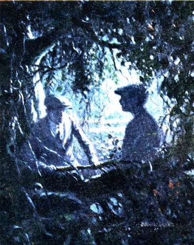 "Hi, there!" called a man's voice. "Where you boys goin'?"