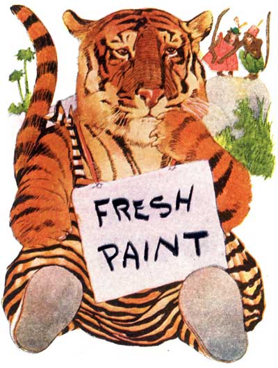 And 'round his neck they hung a "Fresh Paint" sign. |