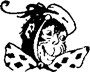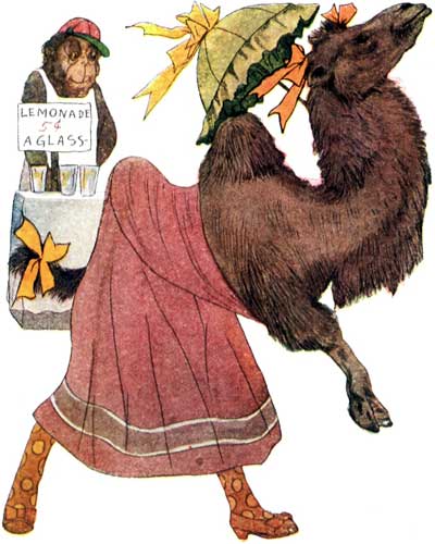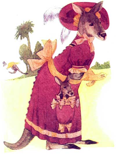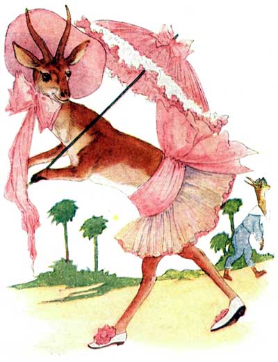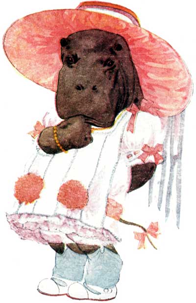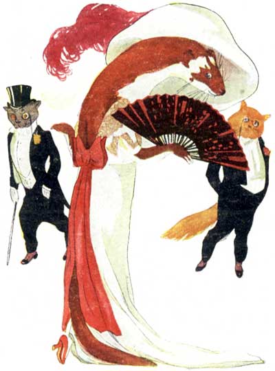 In her red and white gown Miss Weasel's so pert