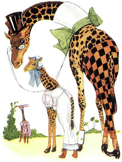 She sends them off to nibble at the bark of the big trees. |