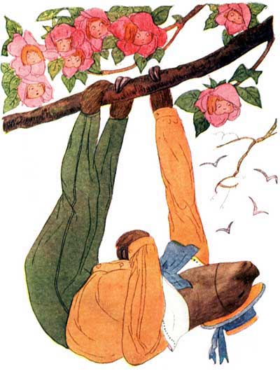 Just winks and cries gaily: "Catch me, if you can." |
