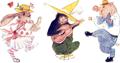 He dances a jig or he trumps a chant—