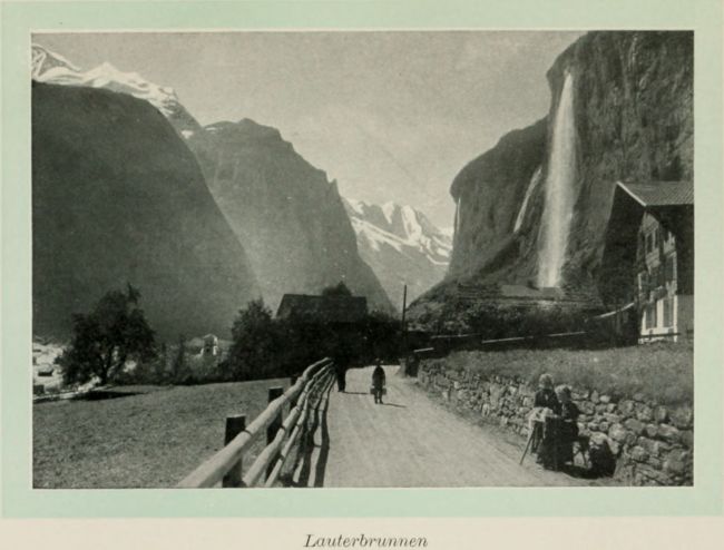 The waterfalls of the Lauterbrunnen valley have a great reputation, as they drop over a cliff about a thousand feet high and turn to spray long before they reach the bottom. But their volume is so insignificant that they are little more than a silver ribbon, and while interesting, they are certainly not equal to their reputation. The great falls of the Yosemite (to which they are often compared) would dwarf them utterly.