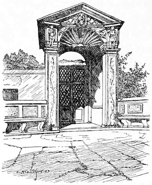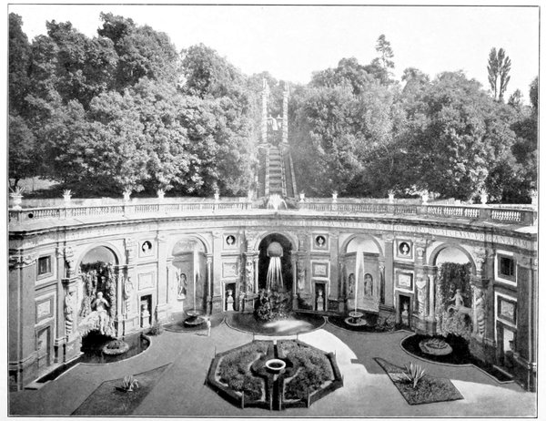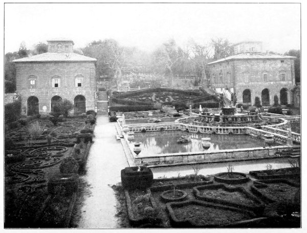 The recognition of this fact was the first step in the development of the great garden-art of the Renaissance: the next was the architect’s discovery of the means by which nature and art might be fused in his picture. He had now three problems to deal with: his garden must be adapted to the architectural lines of the house it adjoined; it must be adapted to the requirements of the inmates of the house, in the sense of providing shady walks, sunny bowling-greens, parterres and orchards, all conveniently accessible; and lastly it must be adapted to the landscape around it. At no time and in no country has this triple problem been so successfully dealt with as in the treatment of the Italian country house from the beginning of the sixteenth to the end of the eighteenth century; and in the blending of different elements, the subtle transition from the fixed and formal lines of art to the shifting and irregular lines of nature, and lastly 8in the essential convenience and livableness of the garden, lies the fundamental secret of the old garden-magic.