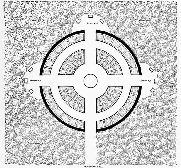 However much other factors may contribute to the total impression of charm, yet by eliminating them one after another, by thinking away the flowers, the sunlight, the rich tinting of time, one finds that, underlying all these, there is the deeper harmony of design which is independent of any adventitious effects. This does not imply that a plan of an Italian garden is as beautiful as the garden itself. The more permanent materials of which the latter is made—the stonework, the evergreen foliage, the effects of rushing or motionless water, above all the lines of the natural scenery—all form a part of the artist’s design. But these things are as beautiful at one season as at another; and even these are but the accessories of the fundamental plan. The inherent beauty of the garden lies in the grouping of its parts—in the converging lines of its long ilex-walks, the alternation of sunny open spaces with cool woodland shade, the proportion between terrace and bowling-green, or between the height of a wall and the width of a path. None of these details was negligible to the landscape-architect of the Renaissance: he considered the distribution of shade and sunlight, of straight lines of masonry and rippled lines of foliage, as carefully as he weighed the relation of his whole composition to the scene about it.