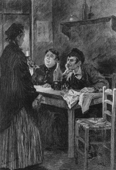 When little Germinie Lacerteux arrived in Paris, being then less than fifteen years old, her sister, desirous to have her begin to earn her living at once, and to help to put bread in her hand, obtained a place for her in a small café on the boulevard, where she performed the double duties of lady's maid to the mistress of the café and assistant to the waiters in carrying on the main business of the establishment. The child, just from her village and dropped suddenly in that place, was completely bewildered and terrified by her surroundings and her duties. She had the first instinctive feeling of wounded modesty and, foreshadowing the woman she was destined to become, she shuddered at the perpetual contact with the other sex, working, eating, passing her whole time with men; and whenever she had an[62] opportunity to go out, and went to her sisters, there were tearful, despairing scenes, when, without actually complaining of anything, she manifested a sort of dread to return, saying that she did not want to stay there, that they were not satisfied with her, that she preferred to return to them. They would reply that it had already cost them enough to bring her to Paris, that it was a silly whim on her part and that she was very well off where she was, and they would send her back to the café in tears. She dared not tell all that she suffered in the company of the waiters in the café, insolent, boasting, cynical fellows, fed on the remains of debauches, tainted with all the vices to which they ministered, and corrupt to the core with putrefying odds and ends of obscenity. At every turn, she had to submit to the dastardly jests, the cruel mystifications, the malicious tricks of these scoundrels, who were only too happy to make a little martyr of the poor unsophisticated child, ignorant of everything, with the crushed and sickly air, timid and sullen, thin and pale, and pitiably clad in her wretched, countrified gowns. Bewildered, overwhelmed, so to speak, by this hourly torture, she became their drudge. They made sport of her ignorance, they deceived her and abused her credulity by absurd fables, they overburdened her with fatiguing tasks, they assailed her with incessant, pitiless ridicule, which well-nigh drove her benumbed intellect to imbecility. In addition, they made her blush at the things they said to her, which[63] made her feel ashamed, although she did not understand them. They soiled the artlessness of her fourteen years with filthy veiled allusions. And they found amusement in putting the eyes of her childish curiosity to the keyholes of the private supper-rooms.