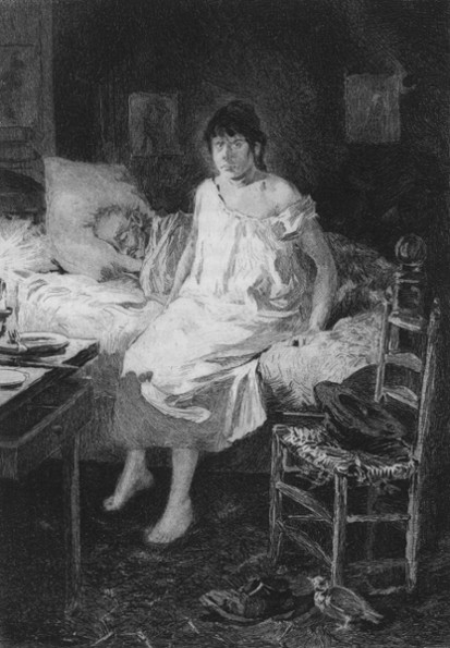 As she spoke, Germinie's face lighted up as if she were still full of the scene of the day before, still stirred up and feverish with jealousy, so near death as she was, because she had heard love spoken of beside her!