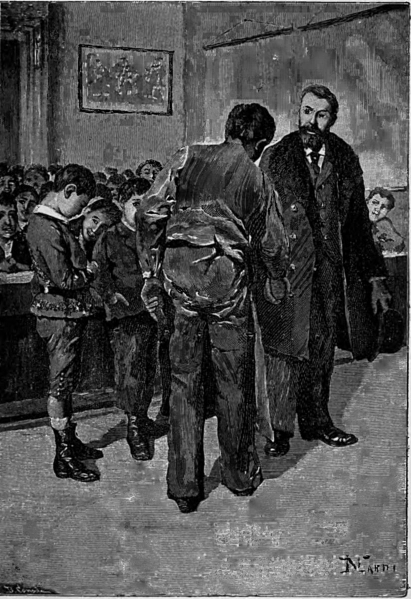 He would have suggested everything to us, had he been able to talk. If the fathers of all these pupils had been in his place, one after the other, they could not have done more. They would have cried “Thanks!” ten times, in the face of them all. And when the other masters said to me, “That is well; you may go,” his eyes beamed with pleasure.