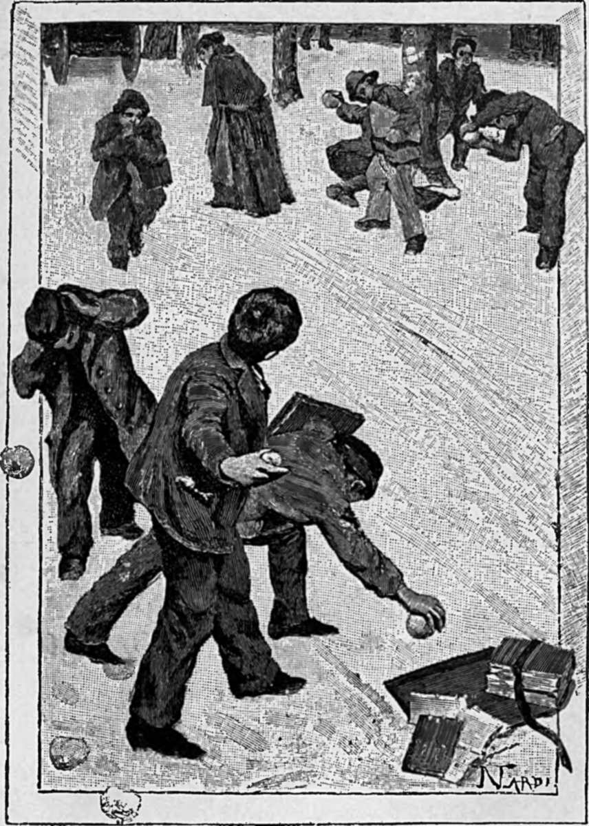 A little before mid-day, my father arrived and raised his eyes to my window; my dear father! At noon we had all finished. And it was a sight at the close of school! Every one ran to meet the boys, to ask questions, to turn over the leaves of the copy-books to compare them with the work of their comrades.