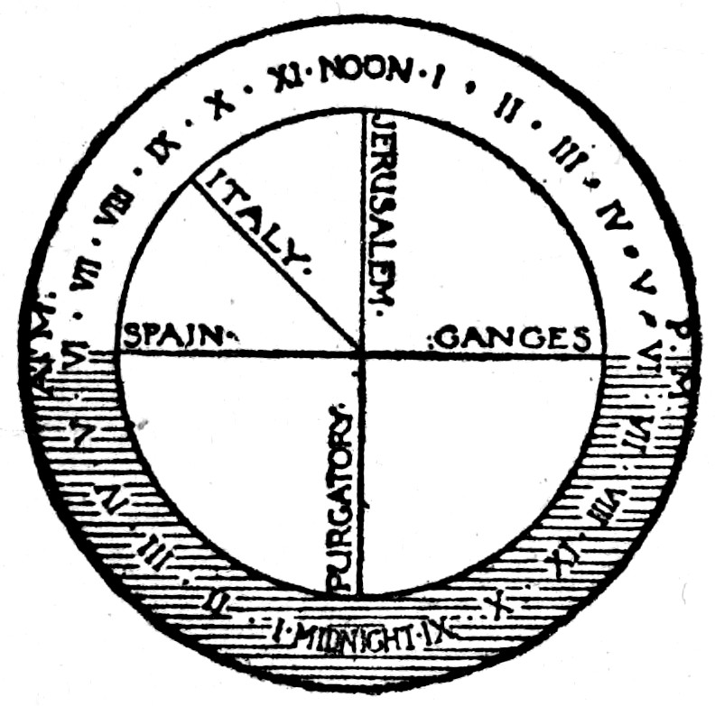 Dante probably took part in the subsequent events of the campaign; the wasting of the Aretine territory, the unsuccessful attack upon Arezzo, the surrender of the Pisan fortress of Caprona. “Thus once I saw the footmen, who marched out under treaty from Caprona, fear at seeing themselves among so many enemies” (Inf. xxi. 94-96). There appears to be a direct reference to his personal experiences of the campaign in the opening of Inferno xxii.: “I have seen ere now horsemen moving camp and beginning the assault, and holding their muster, and at times retiring to escape; coursers have I seen upon your land, O Aretines! and seen the march of foragers, the shock of tournaments and race of jousts, now with trumpets and now with bells, with drums and castle signals.” He has sung of Campaldino in peculiarly pathetic strains in Canto V. of the Purgatorio. On the lower slopes of the Mountain of[Pg 20] Purgation wanders the soul of Buonconte da Montefeltro, who led the Aretine cavalry, and whose body was never found; mortally wounded and forsaken by all, he had died gasping out the name of Mary, and his Giovanna had forgotten even to pray for his soul.