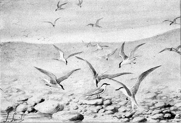 MY island again!—and all the birds still there, looking just as they did when I left it. More, too, have come. At night, but in a sort of murky daylight, I walk over the breeding-ground of the terns, a long flat strip of pebbly beach—or rather the heather a little way above it, for on the beach itself they do not appear to have laid. Rising, all at once, as is their wont, they make a second smaller canopy, above me, floating midway beneath the all-overshadowing one of dreary low-lying cloud. Out of it, ever and anon, some single bird shoots down, with a cry so sharp and shrill that it seems to pierce the ear like a pointed instrument. Occasionally an oyster-catcher darts in amongst them all, on quickly quivering wings, its quavering high-pitched note of "teep, teep!—teep, teep, teep!" threading, as it were, the general clamour, whilst like a grey, complaining shadow, the curlew circles, beyond and solitary, « 2 » shunning even the outer margin of the crowd. How lonely is this island, and yet how populous! The terns—a "shrieking sisterhood"—make, as I say, a canopy above me, when I pace or skirt their territories; but what is that to the great perpetual canopy of gulls that accompanies and shrieks down at me, almost wherever I go? Were it beneath any roof but that of heaven, how deafening, how ear-splitting would be the noise, how utterly unendurable! But going forth into the immensity of sky and air it sounds almost softly, harsh as it is, and even its highest, most distressful notes, sink peacefully at last into the universal murmur of the sea, making the treble to the bass of its lullaby.