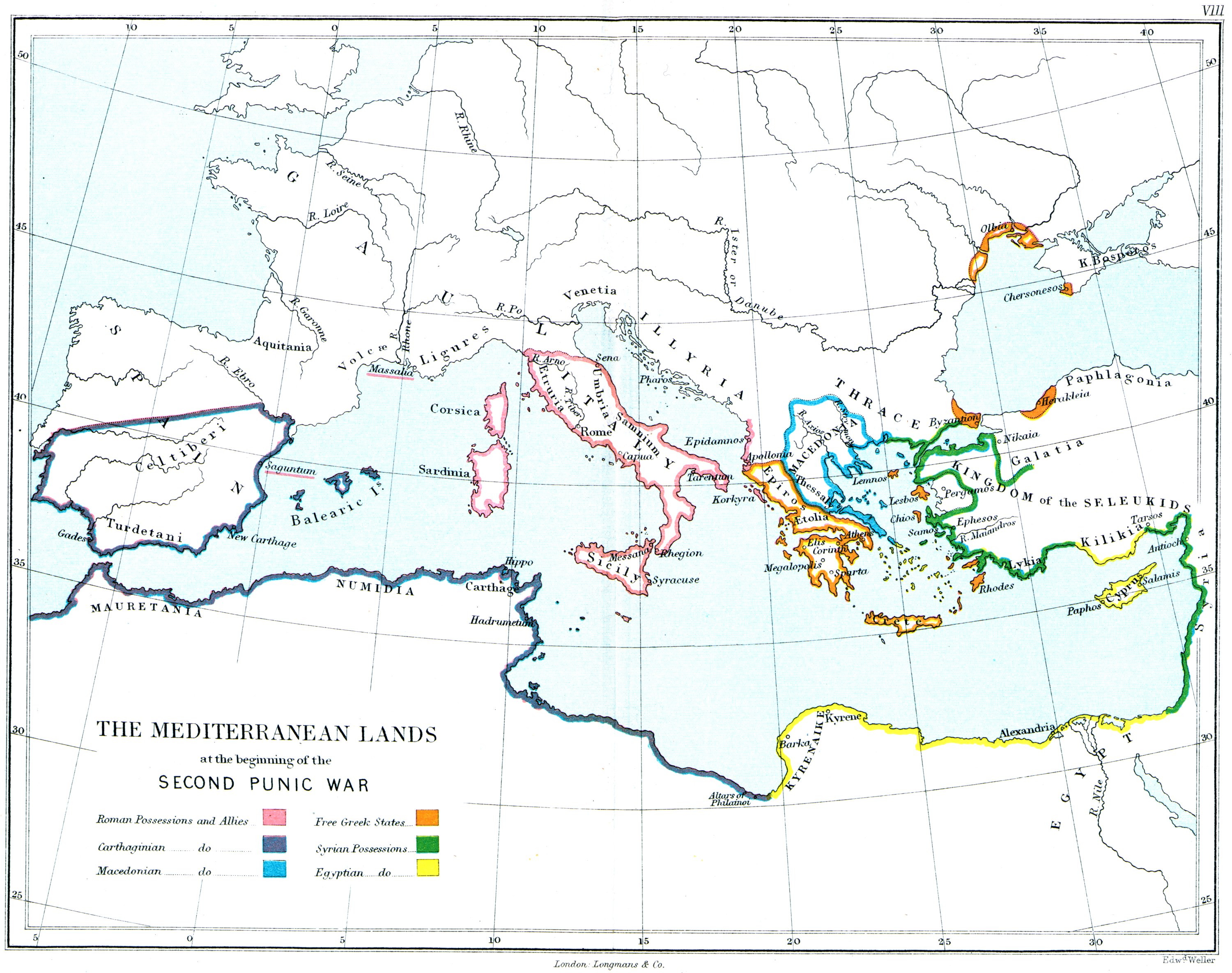 | VIII. | THE MEDITERRANEAN LANDS AT THE BEGINNING OF THE SECOND PUNIC WAR. |