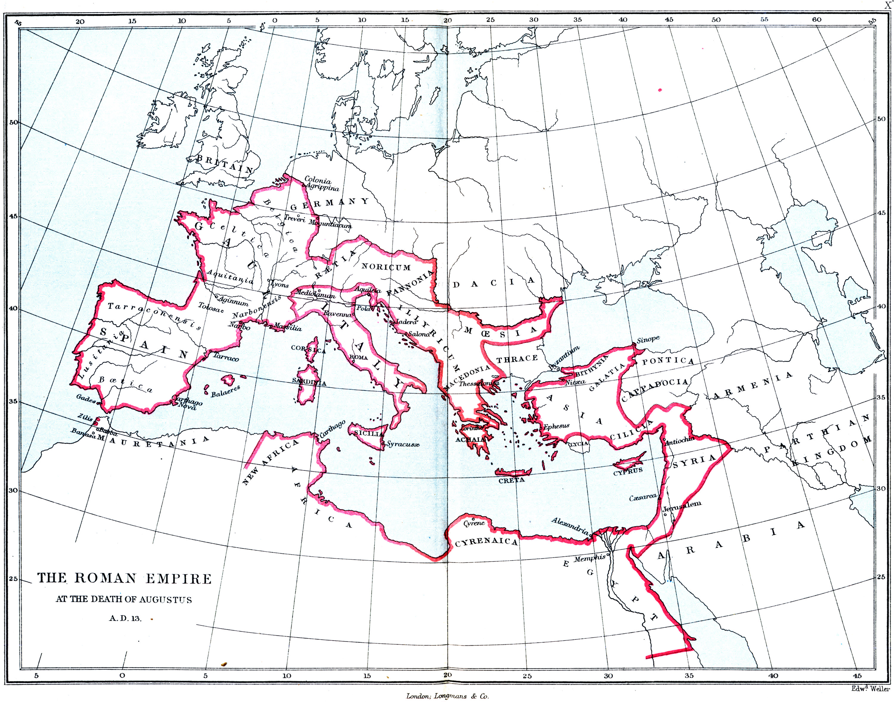 | X. | THE ROMAN EMPIRE AT THE DEATH OF AUGUSTUS, A.D. 13. |