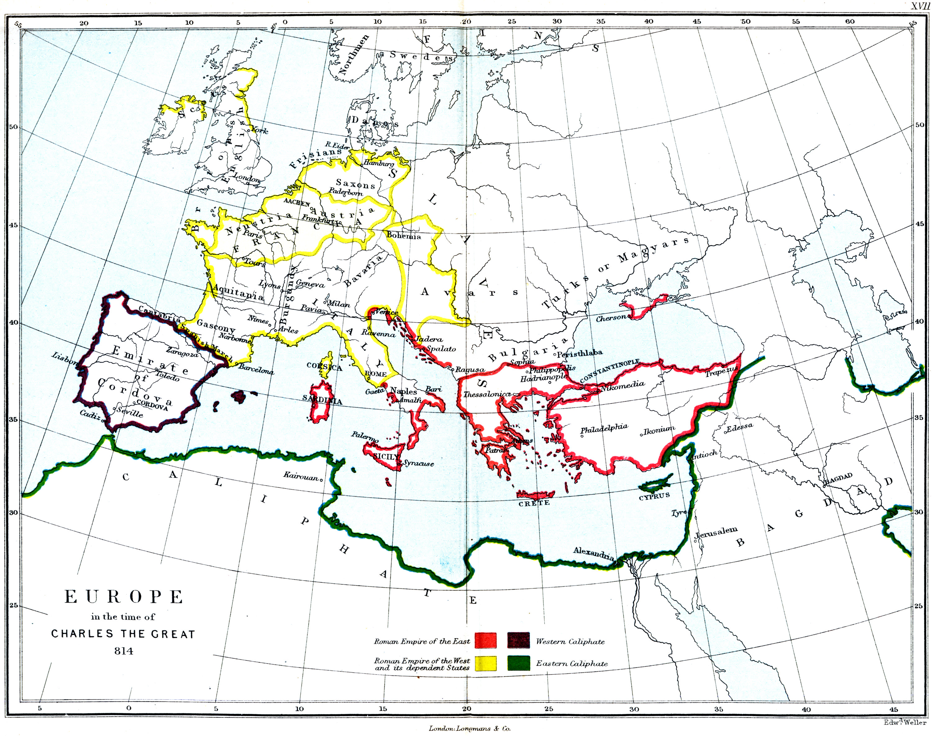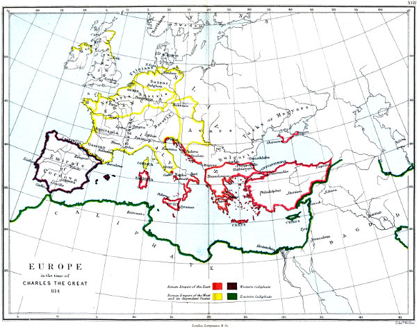 | XVII. | EUROPE IN THE TIME OF CHARLES THE GREAT, A.D. 814. |