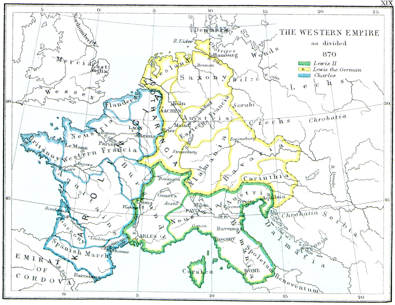 | XIX. | THE WESTERN EMPIRE AS DIVIDED A.D. 870. |