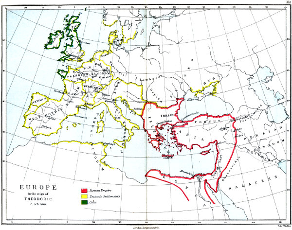 | XIII. | EUROPE IN THE REIGN OF THEODORIC, c. A.D. 500. |