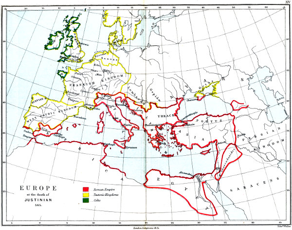 | XIV. | EUROPE AT THE DEATH OF JUSTINIAN, A.D. 565. |