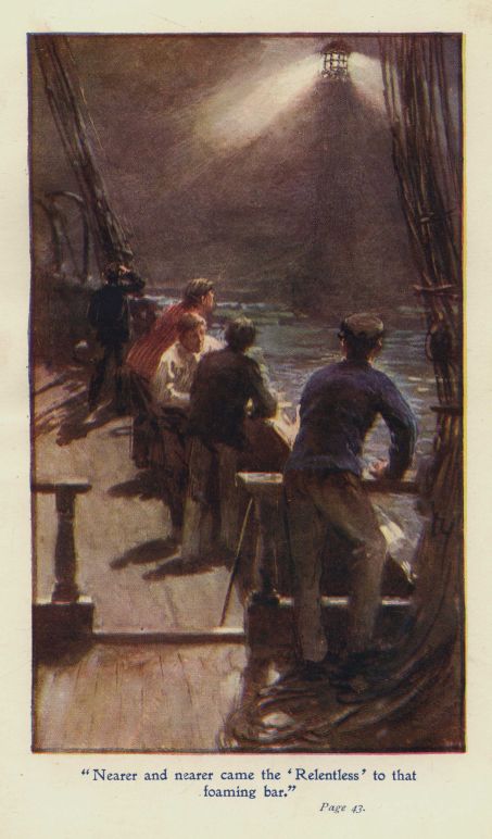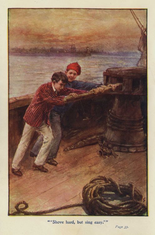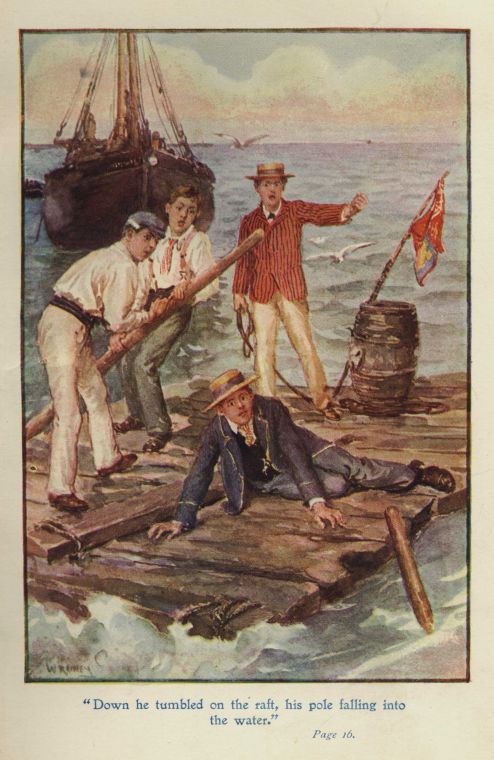 "What you up to, fellers?" shouted Dick to Dab and John Richards, who managed one of the poles. "Bring her round and head her for the shore!"