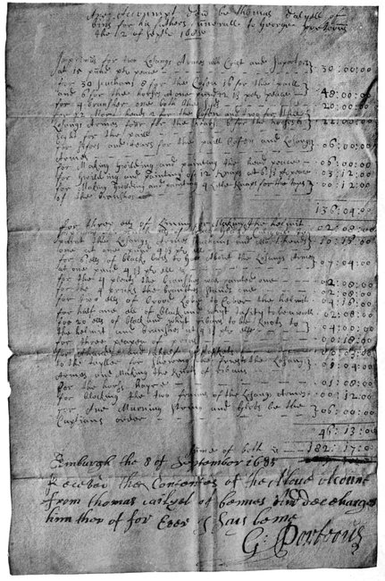 "Ane Account deu be Thomas Dalzell of bins for his fathers funerall, to George Porteous the 2 of Sept 1685."