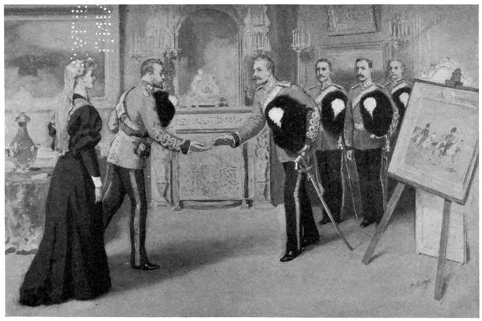 By kind permission of the Artist, and by arrangement with the proprietors of the Copyright, Messrs. S. Hildesheimer & Co. Ltd.