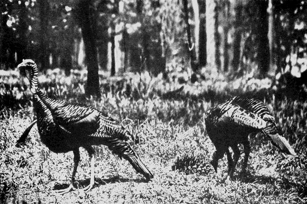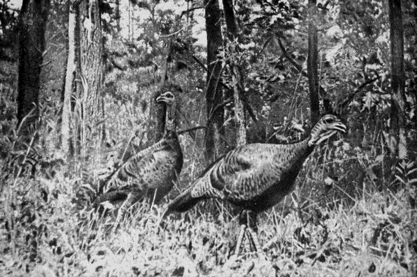 Since the days of Audubon it has been prophesied[17] that the wild turkey would soon become extinct. I am glad to say that the prophecies have not been realized up to the present time, even with the improved implements of destruction and great increase of hunters. There is no game that holds its own so well as the wild turkey. This is particularly true in the southern Gulf States, where are to be found heavily timbered regions, which are suited to the habits of this bird. Here shelter is afforded and an ample food supply is provided the year round. In the states of Florida, Alabama, Mississippi, North Carolina, Georgia, Louisiana, Texas, Arkansas, Missouri, and the Indian Territory the wild turkey is still to be found in reasonable abundance, and if these states will protect them by the right sort of laws, I am of the opinion that the birds will increase rapidly, despite the encroachment of civilization and the war waged upon them by sportsmen. It is not the legitimate methods of destruction that decimate the turkey ranks, as is the case with the quail and grouse, but it is the nefarious tricks the laws in many states permit, namely, trapping and baiting.[18] The latter is by far the most destructive, and is practised by those who kill turkeys for the market, and frequently by those who want to slaughter these birds solely for count. No creature, however prolific, can stand such treatment long. The quail, though shot in great numbers by both sportsmen and market hunters, and annually destroyed legitimately by the thousands, stands it better than the wild turkey, although the latter produces and raises almost as many young at a time as the quail.