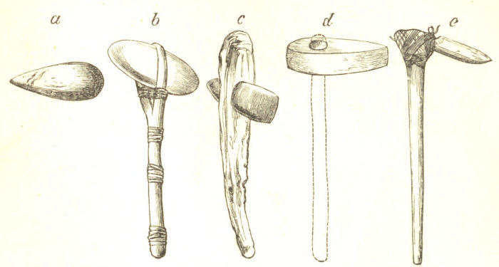 | Development of Instruments, 183—Club, Hammer, 184—Stone-flake, 185—Hatchet, 188—Sabre, Knife, 189—Spear, Dagger, Sword, 190—Carpenter’s Tools, 192—Missiles, Javelin, 193—Sling, Spear-thrower, 194—Pew and Arrow, 195—Blow tube, Gun, 196—Mechanical Power, 197—Wheel-Carriage, 198—Hand-mill, 200—Drill, Lathe, 202—Screw, 203—Water-mill, Wind-mill, 204. | |