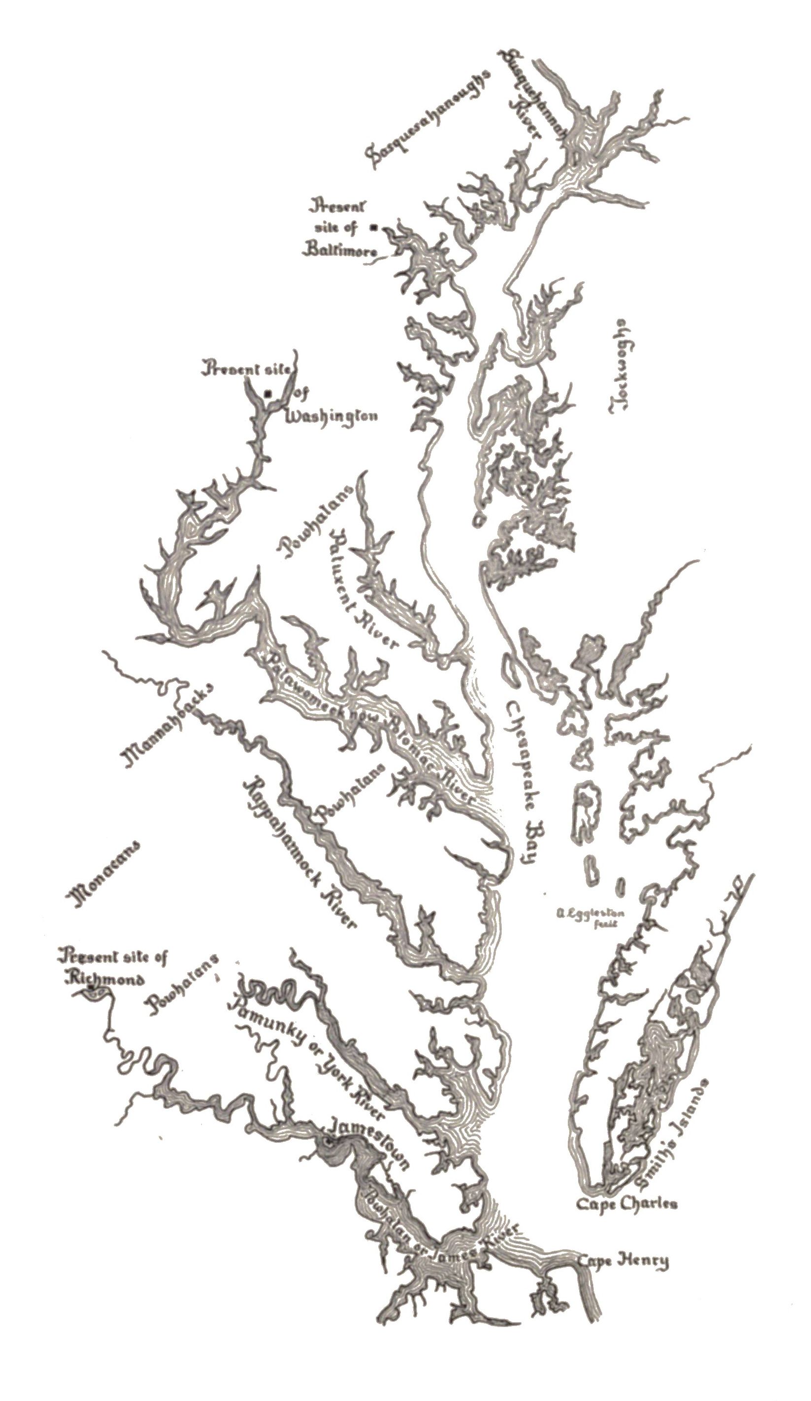 Seeking the Pacific on James River. Twenty years after the return of Ralegh's first colonists the Jamestown company was sent to plant the germ of an English-speaking nation in North America. Beginning with the first voyage of Columbus, the search for a route through America had lasted a hundred and fourteen years. No (p. 9) passage north of Magellan's Strait had been found, yet a belief in the existence of such a water-way remained a part of the geographical creed of the time. The Jamestown emigrants were officially instructed to explore that branch of any river that lay toward the northwest, perhaps because the charmed latitude of 40° might thus be reached. It was in carrying out this instruction that Captain John Smith came to grief at the hands of the Indians while looking for the Pacific in the swamps of the Chickahominy. Smith rarely mixed his abounding romance with his geography; he is as sober and trustworthy in topographical description and in map-making as he is imaginative in narration. But Smith was at this time under the influence of the prevailing delusion, and he hoped that his second voyage up the Chesapeake would lead him into the Pacific. Hudson. His belief in a passage to the westward in latitude 40°, just beyond the northward limit of his own explorations, he communicated to his friend Henry Hudson, who was so moved by it that he sailed to America in 1609 in violation of his orders, and in seeking the strait to the South Sea penetrated the solitudes of the picturesque river that bears his name. Dermer. The explorer Dermer was intent on winning immortality by finding a passage to the Pacific when, in 1619, he was storm-driven into Long Island Sound. At Manhattan Island, or thereabout, he got information from the obliging Indians that made plain his way to the Orient. He was very (p. 10) secretive about this route, which, however, seems to have lain through Delaware Bay.