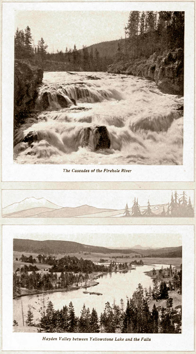 The Cascades of the Firehole River, and Hayden Valley between Yellowstone Lake and the Falls. larger