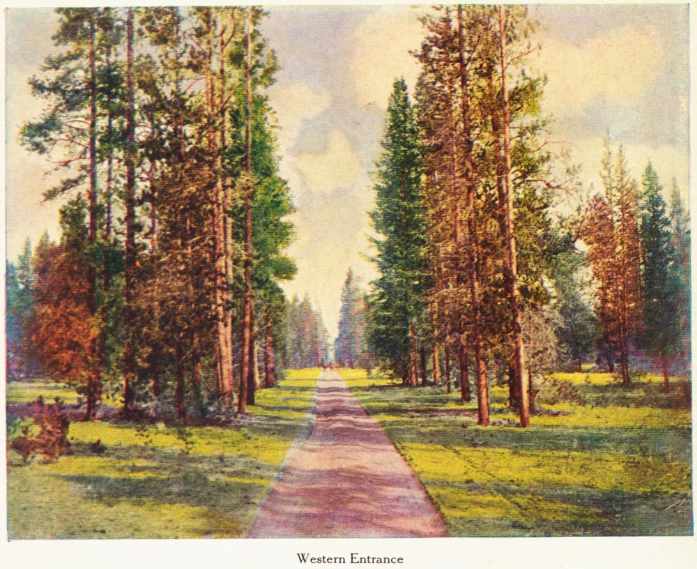 The Government has constructed a system of macadamized roads of easy grade throughout the Park, and these are kept sprinkled daily during the Park season.