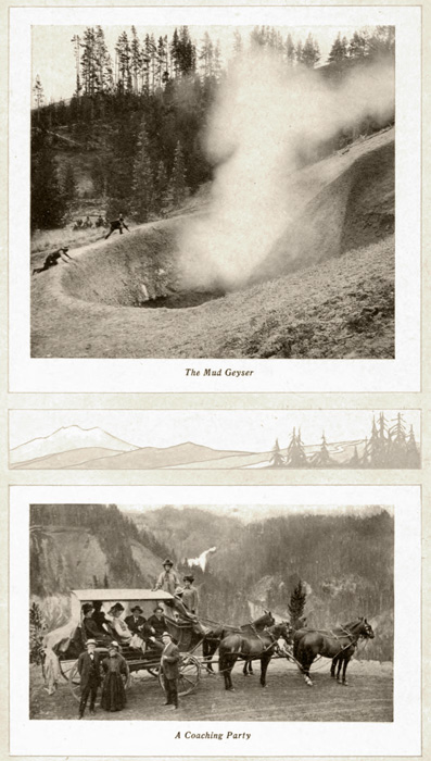 | Complete Tour of the Park | From Salt Lake City, Ogden and Pocatello. Rail, Stages and Hotel. | From Yellowstone. Stage and Hotels. |