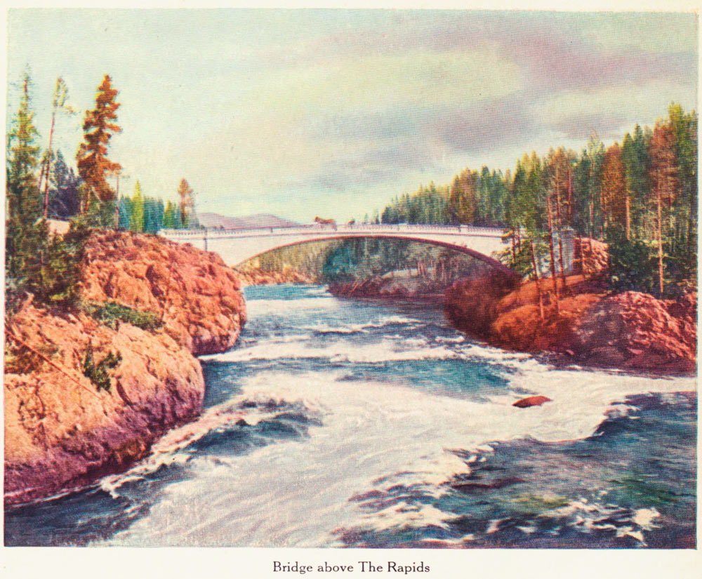 All along this route are strewn stretches of delightful scenery, and fields of rare fertility; but these things the tourist does not see—he awakens for breakfast at Yellowstone, and an hour thereafter is following the course of the beautiful Madison, well on his way into the Park and to the wonders that there await him.