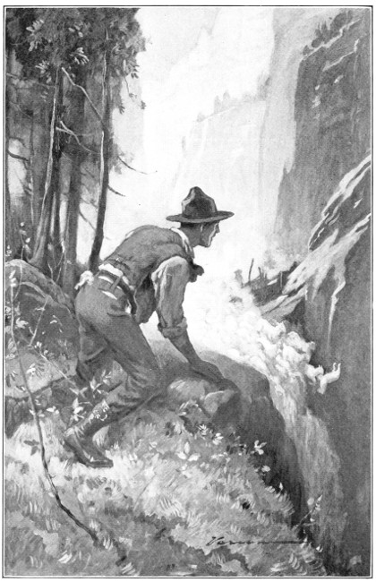 As they proceeded up the valley the ravages of the flood became more evident. There was a considerable volume of water still coming down the stream bed but the flood was over. It was not till they reached the turn in the valley below the lookout station that the full fury of the rushing water was apparent. The violence of the torrent had carried the water high up on the slope toward the lookout tower and had gouged an enormous pit out of the side of the mountain.