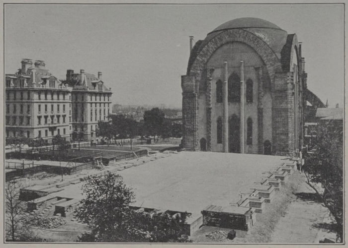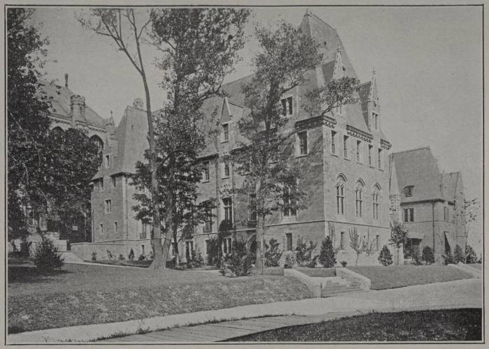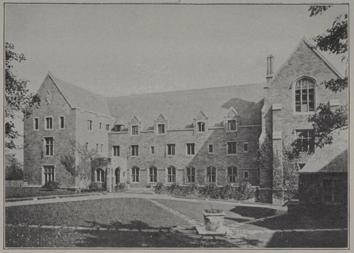 St. Faith’s House (D. on plan) is the home of the New York Training School for Deaconesses, an independent corporation which was founded in 1890 by the late Rev. William Reed Huntington, D.D., and which occupies a site in the Cathedral Close by permission of the Trustees of the Cathedral. The building of Indiana limestone and brick is in Tudor Gothic architecture, and measures 68 by 137 feet on the outside. It is the gift of Archdeacon Charles C. Tiffany in memory of his wife. The architects were Messrs. Heins & LaFarge.