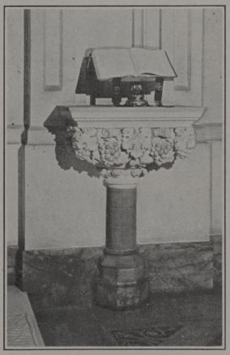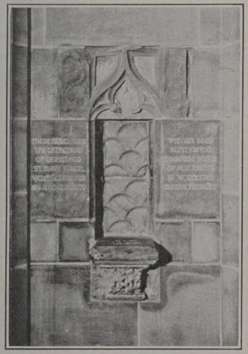 [47] Some years ago, when Canon Douglas was visiting Worcester Cathedral, England, Canon Wilson pointed to a spot in the wall where an ancient carved stone had been replaced by a modern stone, and said: “A good while ago a man of the name of Huntington, who introduced himself as Rector of a church in Worcester, Mass., begged me to give him a bit of carved stone as a symbol of the ties between England and America.” This led Canon Douglas to ask for a similar gift to be placed in St. Ansgarius’ Chapel, which is a memorial of Dr. Huntington, in a House of God where Englishmen and Americans often meet and where members of the Daughter Church have constant occasion to recall their indebtedness to the Mother Church of England.