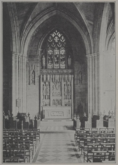 [41] This representation of the Transfiguration, like that in the reredos of the Chapel of Saint James described on page 71, is after Raphael’s last work, the original of which is in the Vatican. In both cases the poses of the six figures have been adapted to the spaces occupied.
