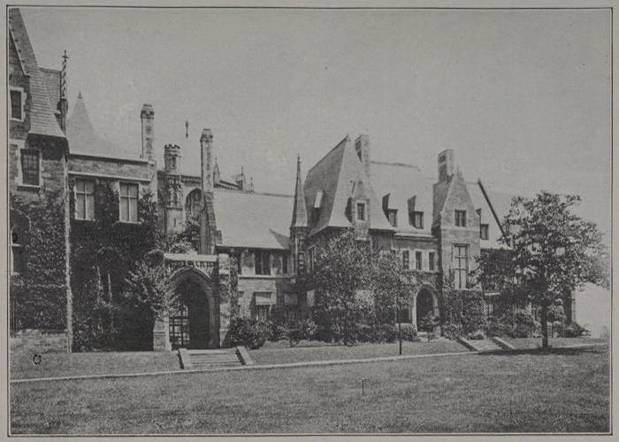 The Choir School building, which cost nearly $180,000, is the gift of Mrs. J. Jarrett Blodgett in memory of her father Mr. John Hinman Sherwood. At Eastertide, 1914, the late Commodore Frederick G. Bourne, who had sung as a boy in Trinity Church and in later years in the Church of the Incarnation, endowed the school with $500,000; and by his will, probated March 15, 1919, gave $100,000 to the Cathedral toward the building of the Nave and about the same amount to the Choir School endowment. Members of the Diocesan Auxiliary to the Cathedral contributed generously toward the furnishing of the school. A tablet in the porch reads: