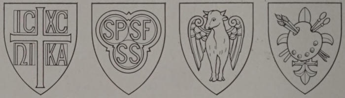 [15] ΙϹ and ΧϹ are the Greek letters iota sigma and chi sigma, (uncial form,) being the first and last letters in each case of the Greek words for Jesus Christ. The letters ΝΙΚΑ are read together and spell the Greek word which means “conquers.” Mrs. Jenner, in her “Christian Symbolism,” says that this inscription “is stamped upon every altar-bread of the Orthodox Eastern Church, and it occurs on every eikon of our Lord.”